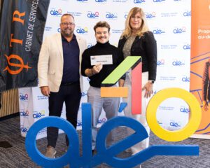Photo Nathan Brunet – Marc Bérubé, président de TREK, William Emard et Patricia Demers, directrice générale de la Fondation Aléo.